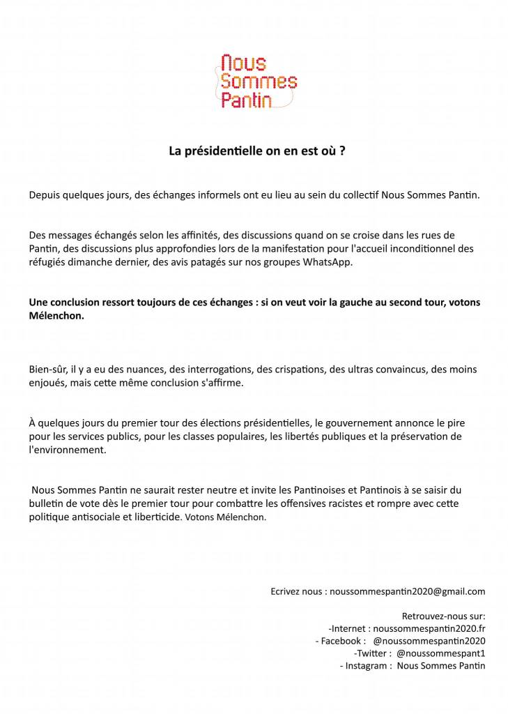 Le collectif Nous Sommes Pantin (NSP) tient à remercier les 499 Pantinois.es qui lui ont apporté leur vote et un élu au conseil municipal.