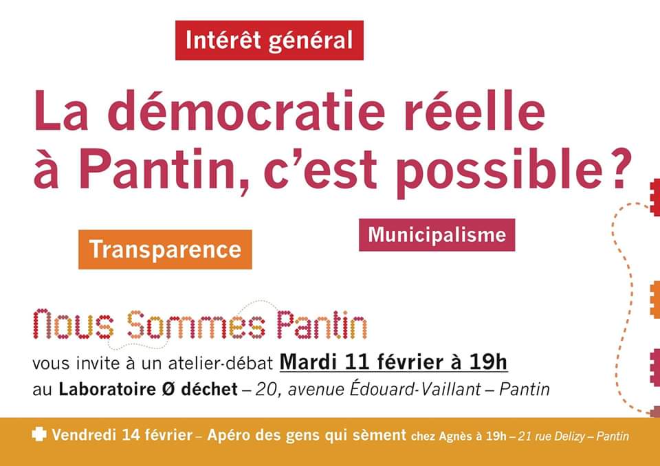 Partie prenante du collectif Pantin Solidaire, qui vient en aide aux exilés qui campent sous les ponts de la porte de Pantin et du tramway dans des conditions épouvantables, Nous Sommes Pantin a mis en place une cagnotte qui sert à leur procurer du café, du thé, du pain, des produits de première nécessité. Voici le lien : https://www.helloasso.com/associations/nous-sommes-pantin/formulaires/1